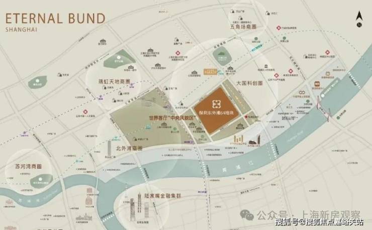 项目所在东外滩板块, 承载着上海近代工商业发展的历史记忆,拥有滨江景观与历经岁月沉淀的历史建筑,是上海现代化进程的见证者之一。