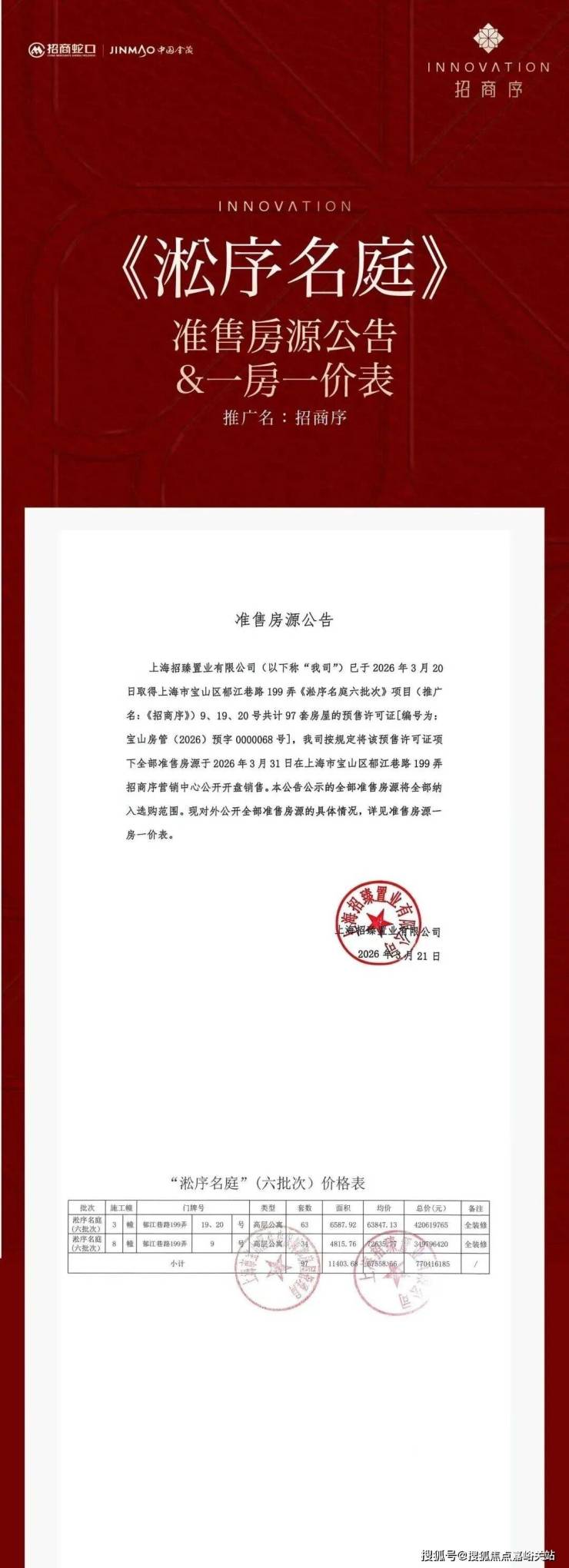 最新消息!中环北抬+双轨枢纽,快速直抵陆家嘴!18号线长江西路站【招商序】六批次加推97套约100-143㎡3-4房;均价67558元/m²!认购金50万;认购时间:3月22日-3月25日;沪上首个三阳台户型、首个悬浮岛屿下沉式庭院。实景示范区开放,售楼处线上火热预约中!