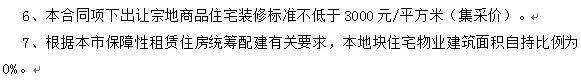 根据土地转让合同要求显示,地块 规划住宅下限130套,住宅装修面积比例100%,装标3000元/m²(集采价)。