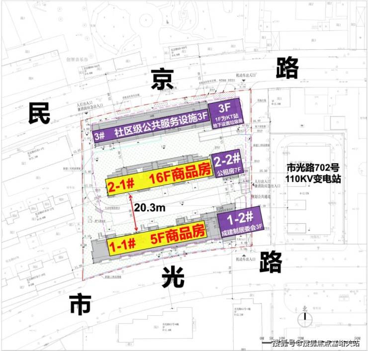 项目四至范围:东至002-06地块、南至市光路、西至居民小区、北至民京路。项目总用地面积约 7458.94平方米,容积率2.3,计容面积约17155.56平方米。