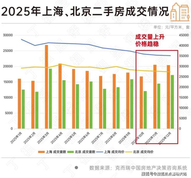 2025年至今,北京和上海的二手房市场一直相对坚挺。2025年11月及12月也都出现了“翘尾”行情,成交面积都在10月筑底后出现了回升。