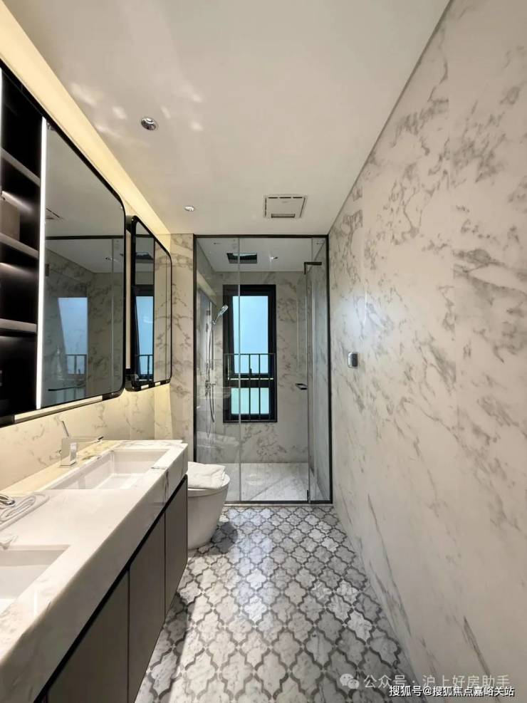 厨房方面,西门子或同档次品牌的燃气灶、抽油烟机、蒸烤箱、洗碗机、嵌入式冰箱五件套;还有细节上的一些配置,例如燃气热水器、末端直饮、凉霸等统统安排上了。