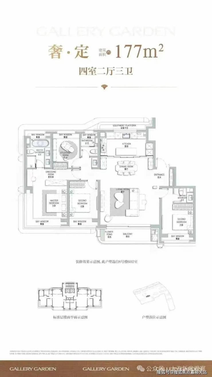 177㎡艺术贵雅奢邸是海上·清和玺压轴力作,延续玺系经典的设计理念和思路,阔朗的四面大开间设计,客厅做到了大横厅设计,延续了曲面流体的阳台,并赠送了独具特色的阳台迷你花园。