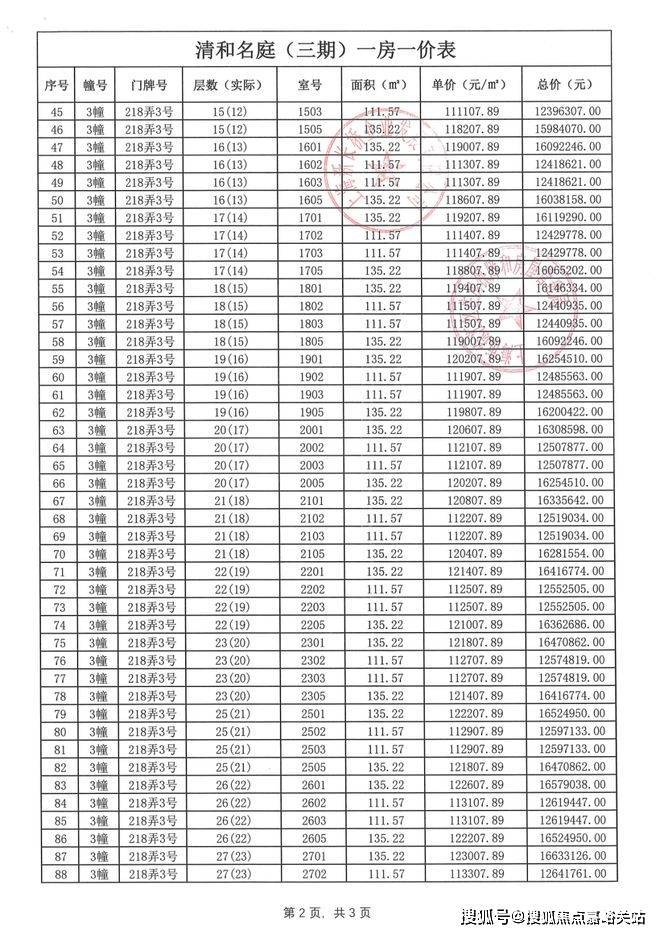 海上清和玺项目前期高层一房一价表▼