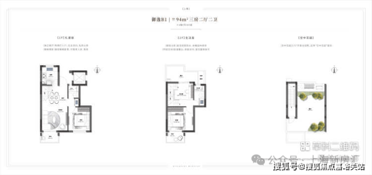 上叠:实现 2+1房2卫 设计,长辈房位于三层、配卫生间,规避上下楼梯的麻烦。 南向阳台与餐客厅一线贯通 ,享受充沛阳光。 四层豪华主卧、北侧连接露台, 空中露台及顶层阳光平台,可量身定制成一方幸福天地。
