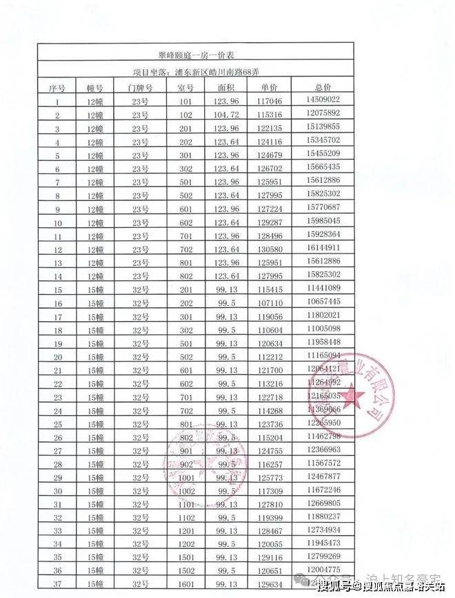 一房一价表如下: