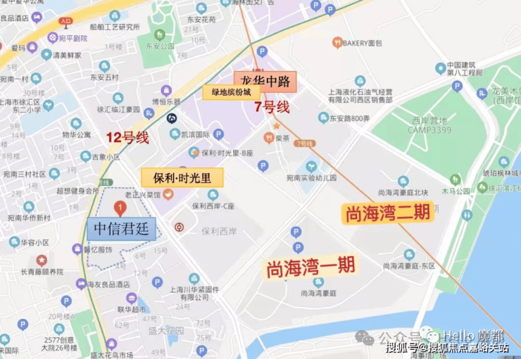 (2)周边150万方商业,自带2.8万方商业街,步行5分钟至7/12号线双轨交互‘龙华中路站’,开车5分钟上内环高架,生活交通便利;