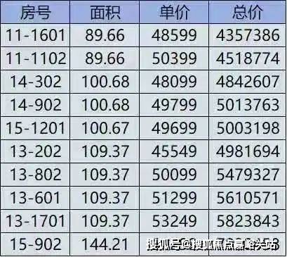 四期一房一价表: