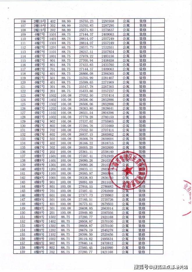 项目一房一价表