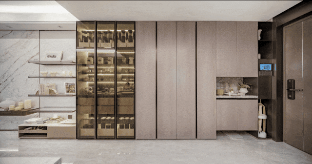 项目在玄关处交付了约2.8米的超长玄关收纳柜;