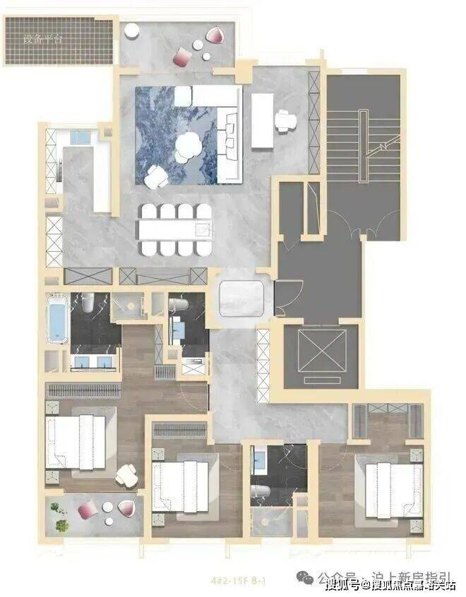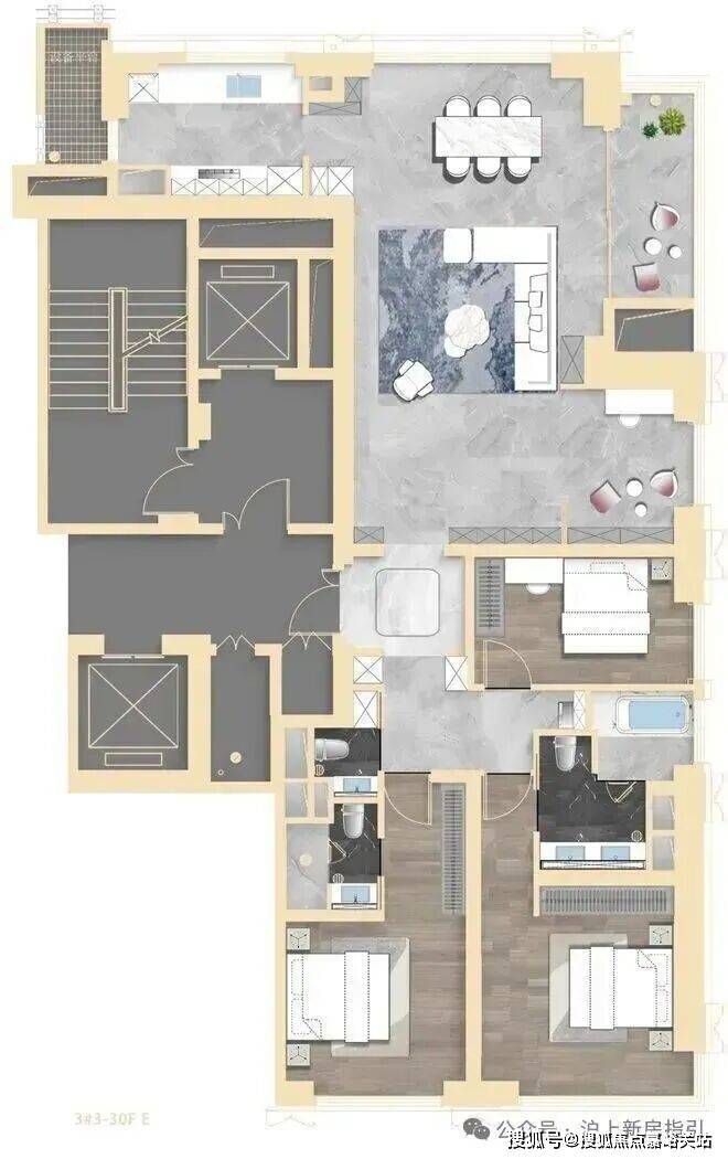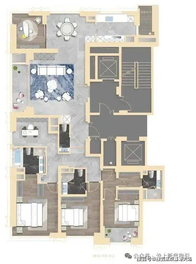 尤其 主卧星级套房 ,配置独立衣帽间、书房,奢华主卫四分离,双台盆+淋浴区+大浴缸+智能马桶,私密性&奢适度无敌;
