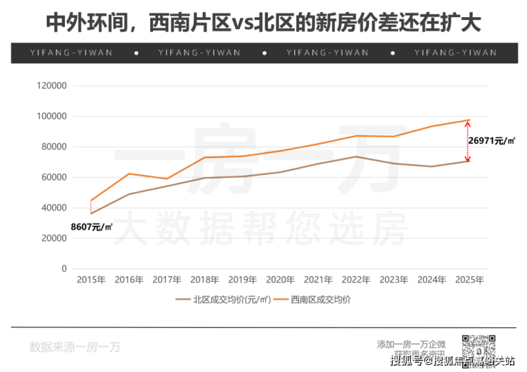 从同环线的新房价格走势来看, 西南侧的价格增幅远高于北区,近10年来还有不断的扩大的趋势。