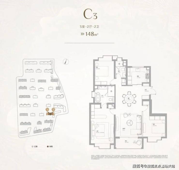 最后再来观摩一下两个3房2厅2卫的大户型产品。