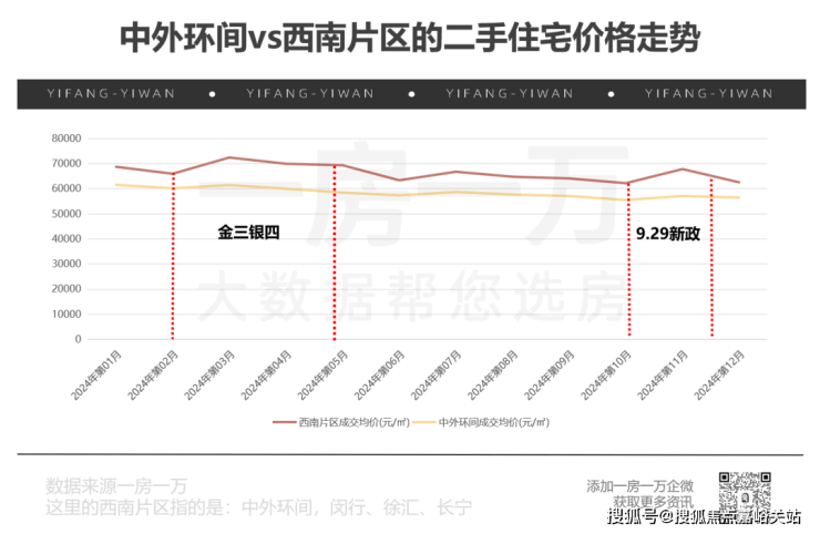 根据一房一万数据中心的统计,在同环线内,西南片区的二手价格走势远高于同环线均价。