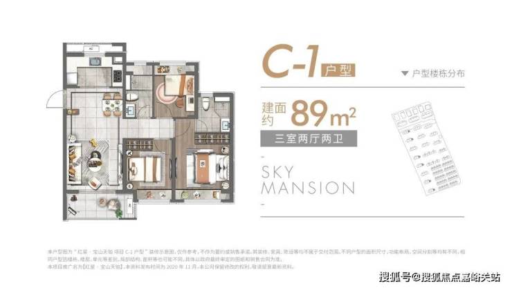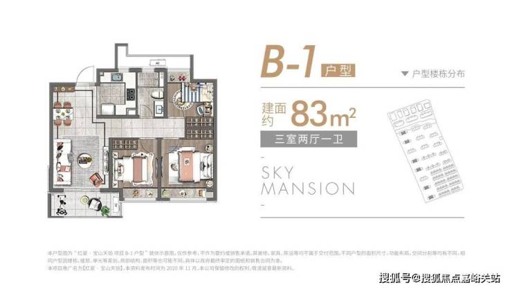除了建面约89㎡的洋房, 建面约83~89㎡高层户型也各有所长,均是三房设计,无论是从结构布局,还是空间利用皆相得益彰,承载一家人的美好生活。 高层户型如下: