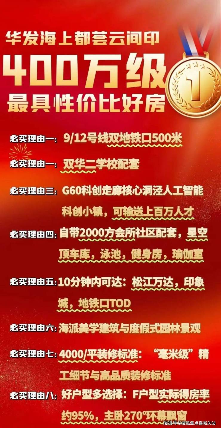 松江9号线、12号线(西延伸在建),双轨交+双TOD大型住宅社区【华发海上都荟】出来一批特价房: 综合折扣85折起! 直线距离双轨交洞泾站仅约500米,此次推出建面约91-101㎡高层、建面约92-122㎡叠加,总价约450万级即可入手双轨墅区品质人居!