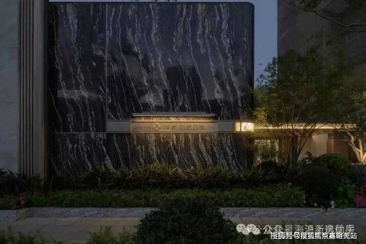 入口两边采用实体景墙与格栅形式,形成围合式院落空间,景墙前端采用奢石与金属点缀,墙面使用照壁灯有序排列,尽显奢侈度假风范。两侧阵列植物绿化,营造迎宾仪式感,凸显品质与调性。 院落内部设计采用了酒店式下落客的设计手法,中心圆形水盘聚八方之财气,寓意财源风水。圆盘水景中间选用特选造型树点缀,营造浓郁的度假氛围。配备豪华酒店式落客区的大堂设计,实现业主尊贵的归家仪式。