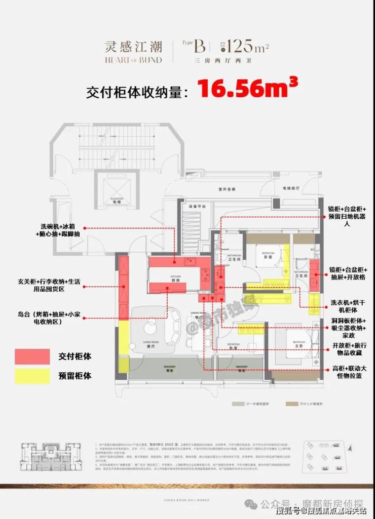 结合我们的户型模拟来看,该户型的整体交付柜子+预留衣柜,可以达到约20.04m³,什么概念呢?