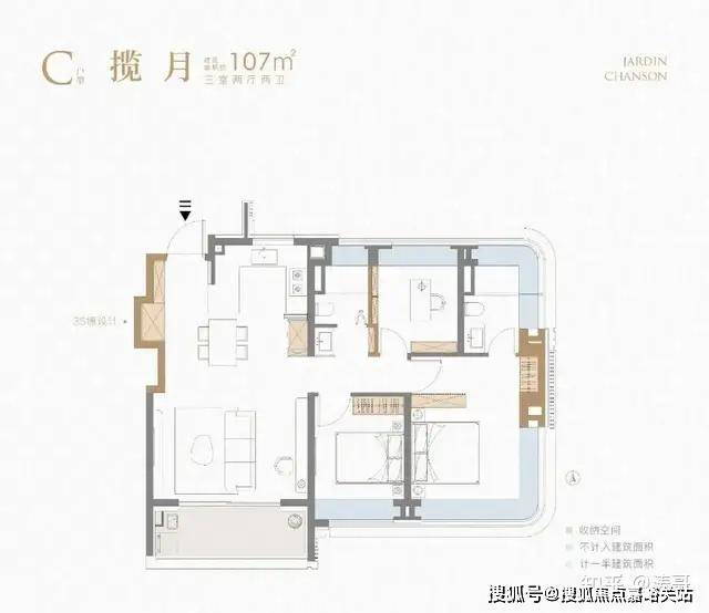 在其主力的107㎡、128㎡户型中,做出了3个S墙优化收纳空间,全维飘窗+宽尺阳台的设计,让空间实现最大化“扩容”,堪称同级最强户型了。