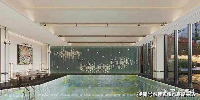 从示意图看,整个空间美学对标市中心豪宅,泳池、健身房、水吧台、私宴厅等功能一应俱全,满足全龄段业主的生活所需。