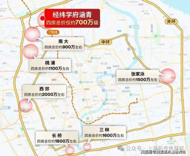 而一旦错过经纬·学府涵青, 700万级预算别说买进中环旁4房,就是外环外的3房都难以够到 (外环外的梅陇、唐镇单价超过8万,百平3房总价800万级)。