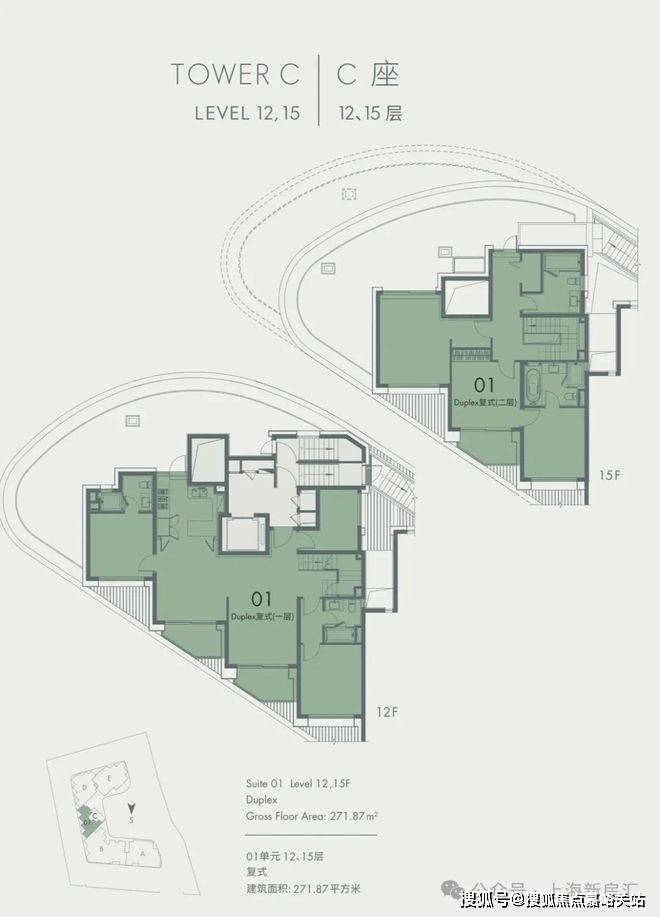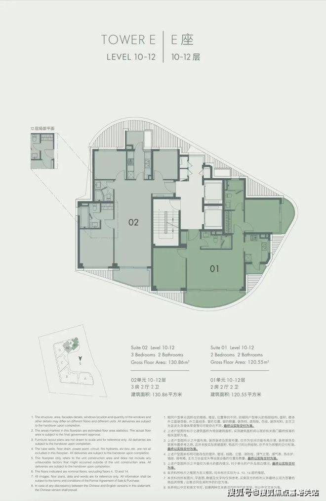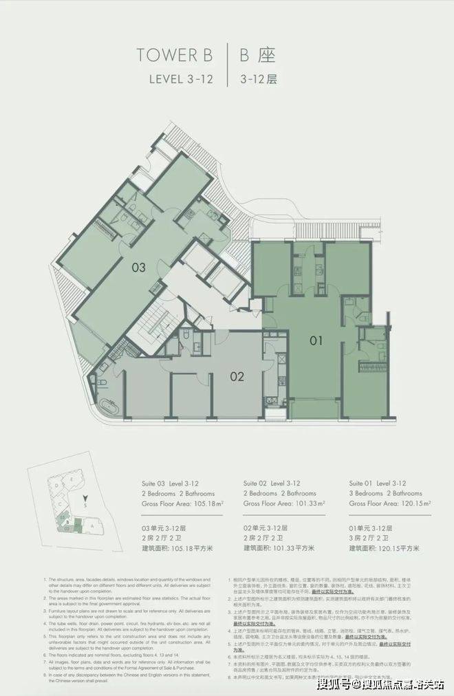 B座 建面约105㎡&101㎡&120㎡,3-12层平面图