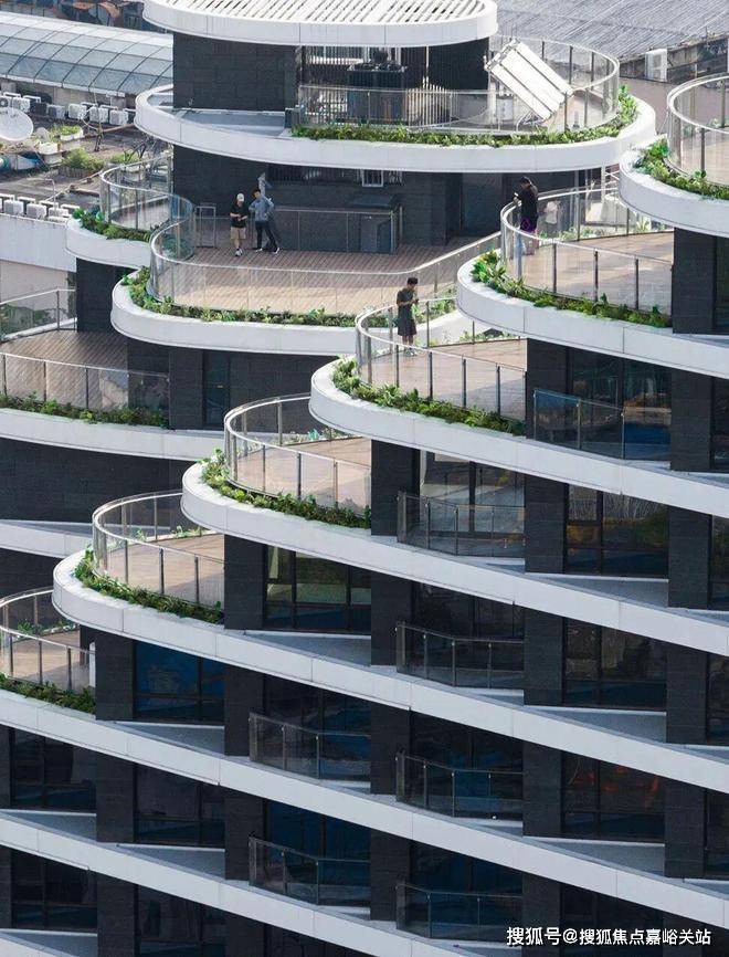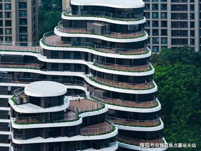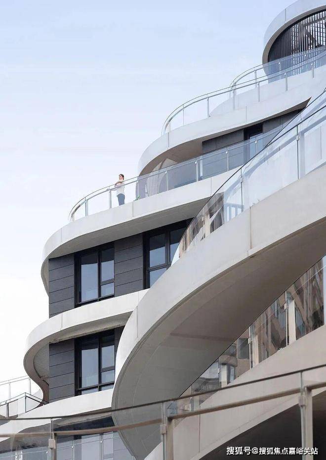 大楼外立面采用前瞻性的 退台式波浪线型设计,巧妙地将江景与建筑相融合,