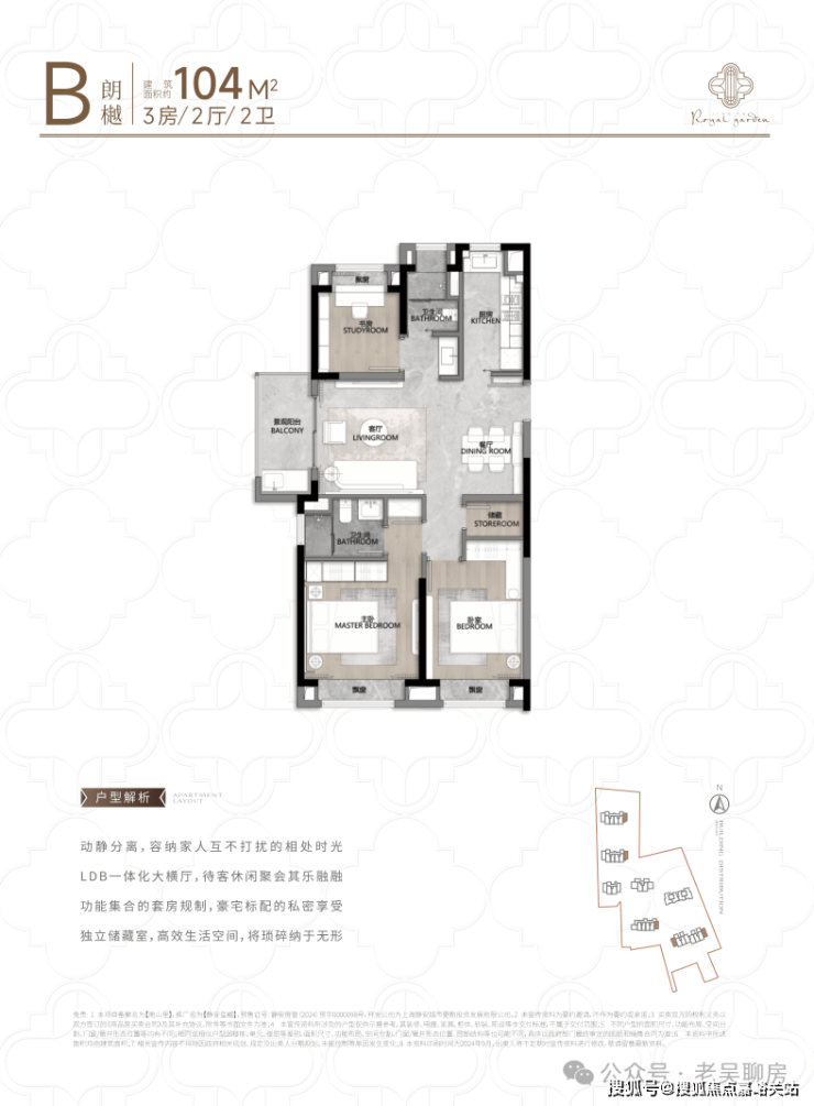 建面约104㎡王炸3房户型