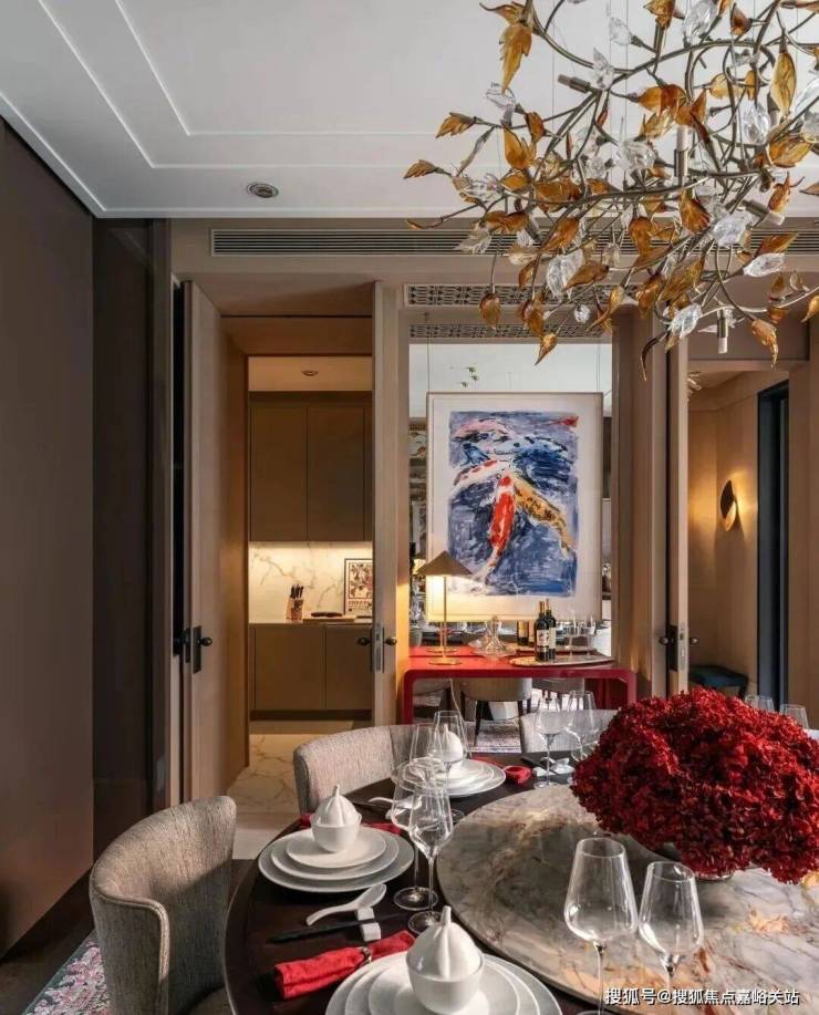 以约160㎡单层空间承载家庭生活的仪式感,约60㎡客餐厅贯通休闲阳台,空间通透、气度非凡。全套房设计,保证每位居者的私密与舒适,礼序有致、功能齐备。