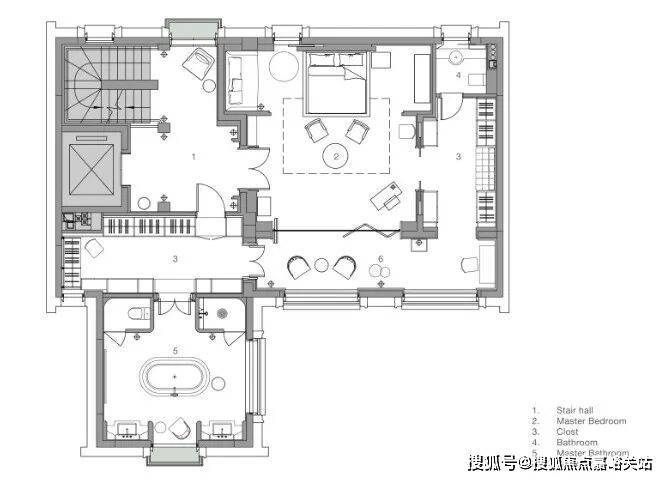 深铜色的栏杆和扶手融合传统与现代语汇,演变出一种当代型态,与现代白色洞石相映成趣,营造出优雅纯粹的意境。