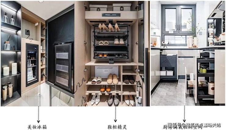 厨房更是收纳主场 , 设置了多功能调味拉篮、定制谷物抽屉,让瓶罐各归其位,烹饪时少了琐碎,多了诗意。