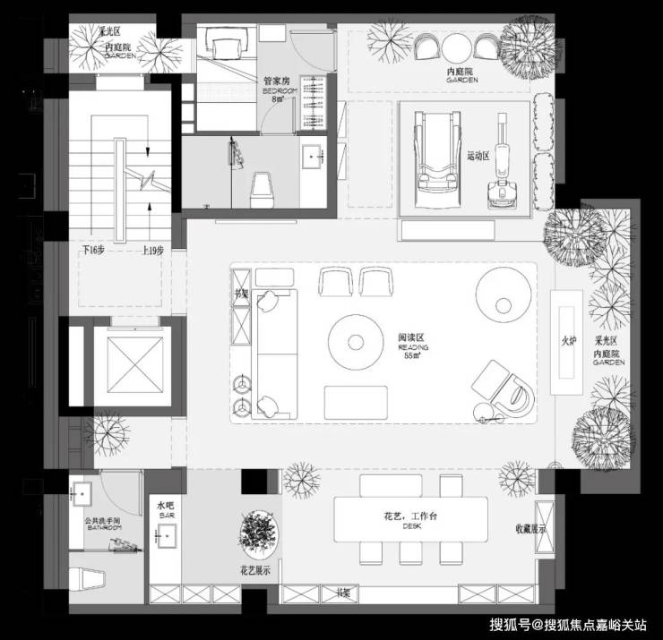 从地下室到顶层,打开生活的垂直剧场,1F庭院与客厅互通,彰显家族生活的轩阔厅堂,2F家庭层,儿女的幸福与陪伴皆在左右,3F总裁套房式Penthouse,用具象的尺度描写人生成就的高度。