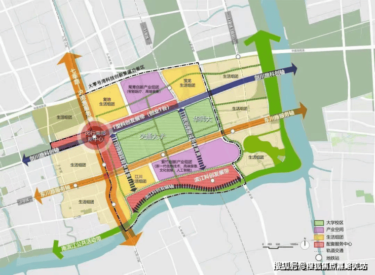 正处上海南部科创中心“一廊一轴”横纵交汇中芯点和4大科创区围合中芯点。