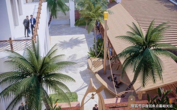 椰子树是海口的象征,彰显了这座城市的风情。椰林大道作为导向空间,结合休闲空间、缤纷街道、主题院落的起承转折形成富有节奏感的空间效果。