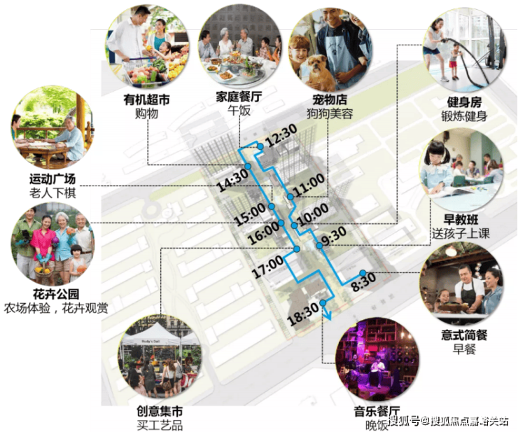 在该理念指导下进行产品线设计,提出了 “全景规划” 塑造街区,且注重运用 “客户思维、产品思维、建造思维、消费思维、运营思维”, 为亲子娱乐、居住休闲、 日常办公的不同使用人群营造全时段、多人群、城市复合街区。