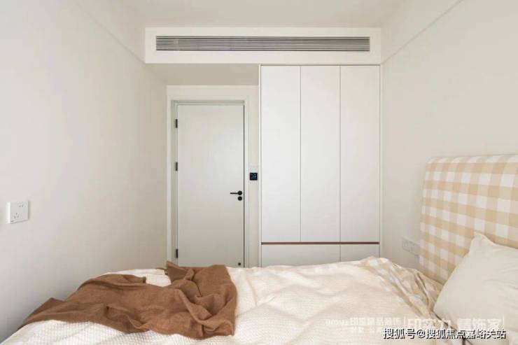 卧室延续了奶油风的简约与温柔,以低饱和的奶白色、浅杏色为主,勾勒出静谧安稳的休憩氛围。