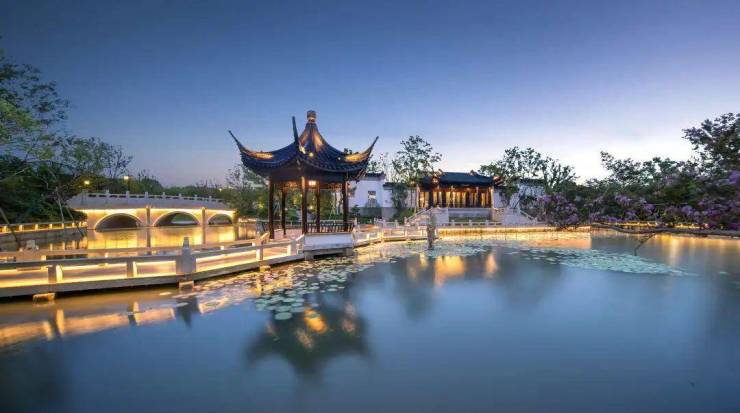璟雲拱桥、山水叠石、六角闲庭,处处皆是惊喜。园中古建,均采用传统木结构建造,尽可能减少现代建筑手法的参与,以期还原最真实的苏式园林。