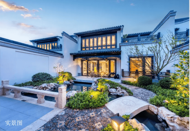 大宅后花园,采用了围合式的建筑结构,有泗水连廊、有金鱼戏水,彰显中式大宅的典雅大气。