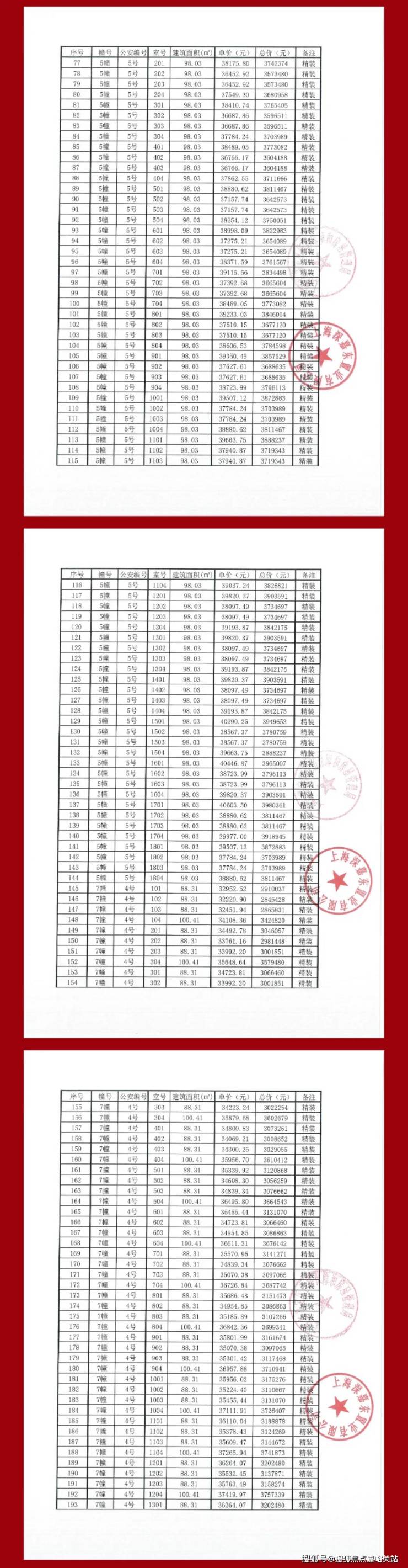 项目一房一价表👇