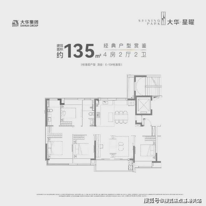 建面约120㎡的产品,市面上大多都是3房但大华星曜做了4房的设计,实用性非常出色。