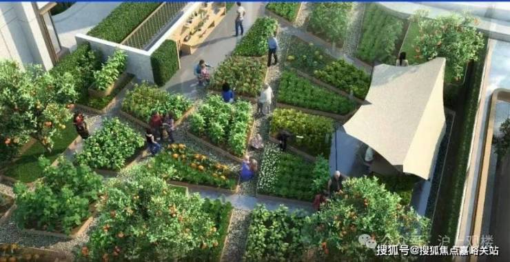 屋顶菜园:城市田园梦,人与自然的乌托邦 (此处指配套用房屋顶)。一块小菜地,可以唤起人们对土地和自然的亲近感,也能让一家人在照料蔬果的时光里,创造美好、独特的共同回忆。