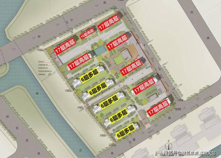 项目拟建8栋16-17层高层住宅(含1栋17层保障房),以及5栋6层住宅,共计686户。小区人车分流;车位比约1:1.8,社区内部有水景、下沉式庭院。