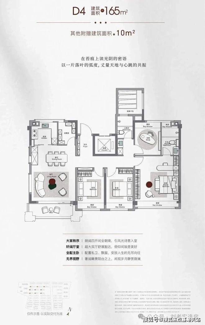 主卧建面约25㎡,自成一方小天地。除了设计有干湿分离的卫浴空间,还特别打造了步入式衣帽间,满足主人的“收藏欲”;加之南北通透的布局,连接双联阳台,阳光浸润生活,清风鲜活呼吸。 南向约6.7m双联阳台+270°无敌视野,大尺度通透观景窗,构筑巨幕瞰景视野,窗外风景即是日常的背景画。 屋顶瞰景平台,随时打卡社区风景与兰香湖波光。