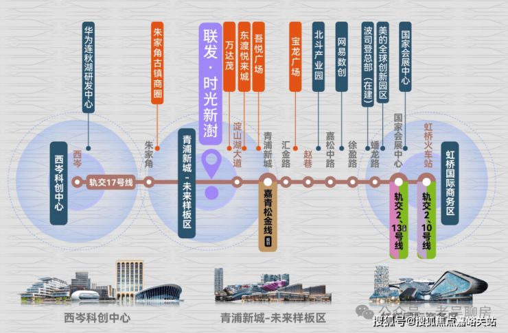 展开地图,可以看到 从联发·时光新澍出发,3站华为、4站市西软件园、8站虹桥商务区,直接锁定三大高能级产业价值,未来发展空间可想而知!
