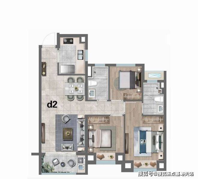 D2户型:建筑面积约99㎡3房2厅2卫陕建名城映蓝售楼处电话为 400-8569-058