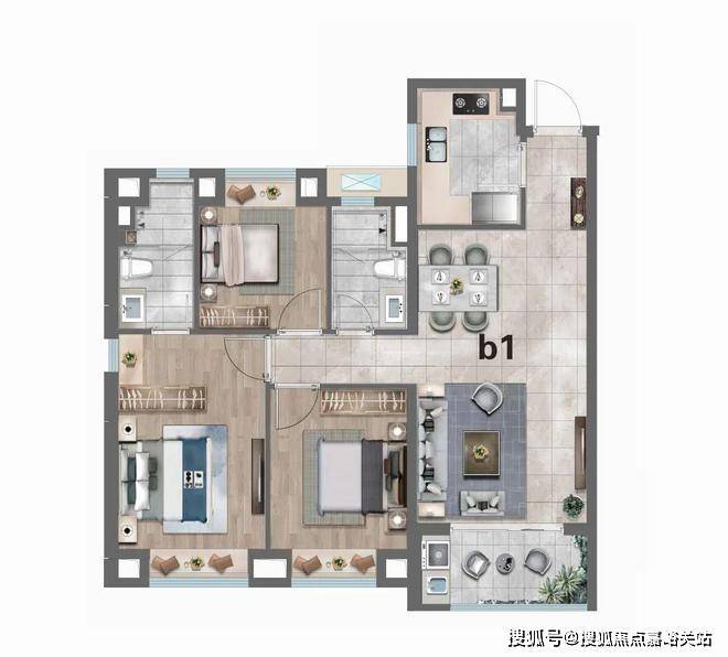 B1户型:建筑面积约104㎡3房2厅2卫