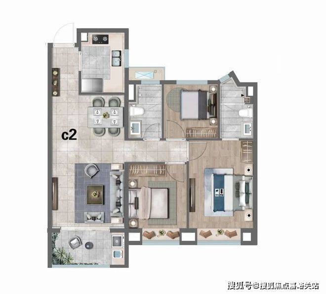 C2户型:建筑面积约98㎡3房2厅2卫