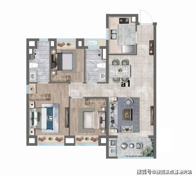 A1户型:建筑面积约98㎡3房2厅2卫