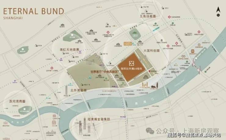 项目所在东外滩板块, 承载着上海近代工商业发展的历史记忆,拥有滨江景观与历经岁月沉淀的历史建筑,是上海现代化进程的见证者之一。