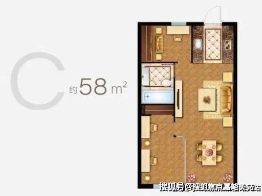 C 户型:58㎡两房一厅,总价 65-70 万